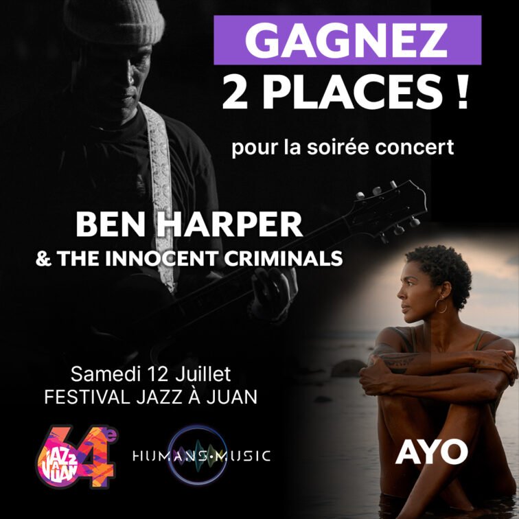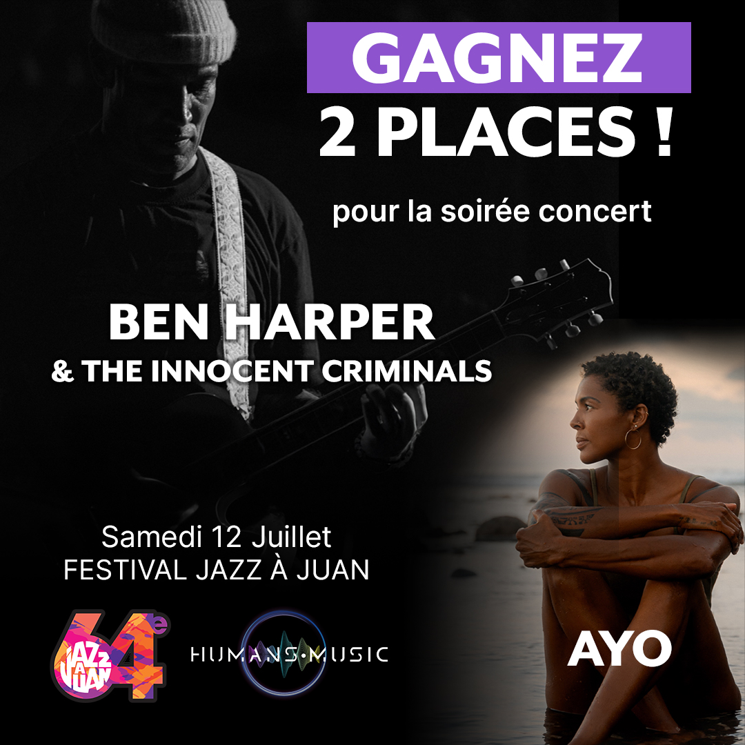 🌍🎵Humans Music vous fait gagner 2 places en catégorie 1 pour la soirée concert de BEN HARPER & the Innocent Criminals et AYO en partenariat avec Jazz à Juan.